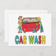 La conception de la voiture de lavage montre le nettoyage de voiture par deux laveuses experts. L'un utilise un tuyau de pression pour nettoyer la grime et l'autre utilise de l'éponge à l'ancienne, de l'eau savonneuse et du travail acharné.