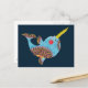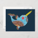 Cet animal d'apparence imaginaire existe vraiment dans le monde réel ! Il a une longue défensive unique comme la licorne. Narwhal inclut la famille des baleines. Elle vit dans les eaux arctiques autour du Groenland, du Canada et de la Russie. Narwhal peut vivre jusqu'à 50 ans. Le motif est inspiré de motifs tribaux et fait avec un milieu aquarelle.