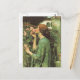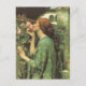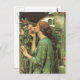 Une jeune femme aux cheveux rouges foncés se dirige vers le haut vers un rose d'escalades pour sentir le parfum. Art du XIXe siècle par John William Waterhouse.