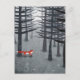 Un renard rouge sauvage se dresse au milieu des arbres dans une forêt sombre. Une peinture paysagère pour les amoureux des animaux, de la nature et de la faune.