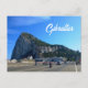 Carte postale du rocher de Gibraltar via la piste d'atterrissage et de décollage de l'aéroport. Gibraltar se situe dans le sud de l'Espagne (géographiquement en Andalousie) et appartient à l'United Kingdom.