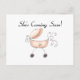 La maman enceinte à être et papa à être aimera ce mignon T-shirt design maternité, sac fourre-tout, boutons, et autres articles de grossesse avec un chariot rose et le texte qui dit "Elle arrive bientôt!".