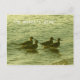 Quatre avocats se promenant dans le surf coloré au coucher du soleil.