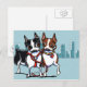 OEuvre originale de Off-Leash Art de deux Boston Terriers, un Boston de couleur rare, les deux tenant une laisse rouge. Retrouvez également cette oeuvre sur les cartes de visite d'animaux domestiques :