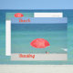 Parapluie de plage rouge vif contre un bel océan bleu tropical avec juste l'allusion de quelqu'un qui lit sur la plage. Le texte personnalisable sur cette carte postale peut être utilisé pour nommer Votre plage. Sable, mer, surf, soleil et un bon livre ! Cette image est une photo de plage originale de JLW_PHOTOGRAPHY.