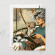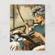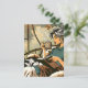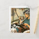 Une jolie dame se reposant dans sa chaise Papasan confortable lisant un livre, buvant du café avec un mignon chat noir et blanc qui dort sur ses genoux. Une carte postale mignonne pour rester en contact et dire bonjour à un ami !