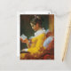 oeuvre vintage montrant une jeune femme habillée en jaune lisant un livre