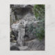 Une belle photo d'une mère léopard des neiges s'étirant pour saluer son petit qui se repose sur une corniche rocheuse. Personnalisable - ajoutez votre propre message avec l'outil de type
