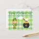 Souhaitez à quelqu'un un, "Happy Jour de la Saint Patrick", avec cette carte postale lumineuse et joyeuse. Dispose d'un arrière - plan plaid vert, avec un Leprechaun et un Pot of Gold.