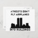 Carte Postale Les athées ne volent pas d'avion dans les bâtiment
