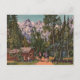 Belle image vintage de la chaîne de montagnes du Grand Teton au Wyoming. Des montagnes enneigées surplombent des cow-boys à cheval qui parlent à des hommes devant un cabine en rondins. Western très vintage !