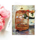 Carte postale avec le tableau The Cage (1885), de Berthe Morisot (1841-1895), elle est une artiste impressionniste française. La critique d'art Gustave Geffroy la surnomme les trois grandes dames, les trois grâces de l'impressionnisme, avec Mary Cassatt et Marie Barcquemond. Ce tableau représente une cage d'oiseau en osier sur une table avec un bol de fleurs en céramique.