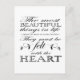 Ce joli design exprime le sentiment : "Les plus belles choses de la vie ne peuvent être vues ni même touchées, elles doivent être ressenties avec le coeur." Le texte est noir et est présenté sur un arrière - plan transparent. Si vous préférez un arrière - plan coloré, cliquez simplement sur "Customiser", puis sur "Modifier", puis sur "arrière - plan" et sélectionnez la couleur de votre choix.