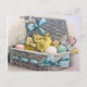 Carte Postale Les poulets en basket with eggs and flowers