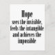 Un beau dicton, presque poétique, sur les qualités de l'espoir : "L'espoir voit l'invisible, sent l'intangible et réalise l'impossible."