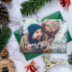 conception de famille heureuse avec lettrage blanc pour votre carte de vœux de noël. Le texte, les images et les couleurs peuvent être personnalisés.