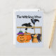 Belle scène d'Halloween avec chat noir, balai de sorcière. citrouilles, corneille et araignée de vampire sur les chemises et les cadeaux.