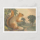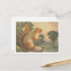 Cette carte postale est une reproduction d'une lithographie vintage montrant un écureuil dans la forêt.