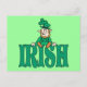 Ce joli dessin de la Saint Patrick présente une wee leprechaun wearin' green et se trouve sur le dessus de la légende "Irish" en grand texte vert.