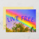 Carte postale avec affirmation LIVE FREE sur ma photo améliorée d'arc-en-ciel dans White Lake