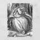 Cette carte postale présente une illustration vintage en noir et blanc d'une triste princesse solitaire assise seule dans les bois, près d'un grand arbre et surveillée par une grenouille.