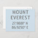 Carte postale avec latitude et longitude pour le Mont Everest, Népal en gris, police de gabarit moderne sur arrière - plan gris bleu clair