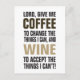 Lord Give Me Coffee and Wine ! Pour changer les choses que je ne peux pas et Wine à propos de la chose, je ne peux pas. Cartes postales de motivation amusantes.