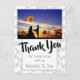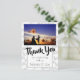 Une carte postale classe avec Merci écrit dans une police de script et accentué par le nom du couple dans une police moderne. Il y a de l'espace pour votre photo mariage préférée. L'amour est un mignon motif d'art de mots gris clair. Le dos a de la place pour une note manuscrite.