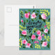 Belle illustration peinte à la main, avec des roses roses, des feuilles vertes et un devis: Love yourself, sur fond bleu vert.
