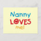 Nanny Loves Me T-shirts, cartes, autocollants, sacs de costumes, et plus avec coloré rouge, jaune, et bleu texte et conception du coeur. Ces vêtements et cadeaux Nanny Love me feront sourire !