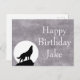 Grande illustration pour les amateurs de loups avec une pleine lune blanche avec silhouette de loup hurlant et texte d'anniversaire personnalisable