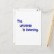 Ce slogan philosophique vous rappelle que même quand vous pensez que personne n'écoute, il y a toujours un pouvoir plus grand qui fait attention. Le graphisme est bleu et gris texte qui dit : L'Univers est à l'écoute. Ce design inspirant la pensée est un grand cadeau pour les gens qui croient au karma et au pouvoir de la pensée positive. Customisez ce graphique en ajoutant votre propre message ou image unique. La couleur arrière - plan peut également être personnalisée sur la plupart des produits.