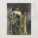 Photo vintage amusante d'une jeune femme en tenue scandaleuse. Elle a des morceaux de pure comme couche extérieure de sa robe. Il est couvert de grosses pièces. Sa ceinture, composée de grosses pièces, est suspendue au-dessus de ses genoux. Elle a aussi un chef-d'oeuvre avec de grandes pièces qui se détachent de sa tête