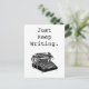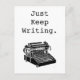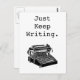 Cette carte postale originale d'inspiration vintage présente une illustration en noir et blanc d'une machine à écrire de 1906. La carte postale dit "Continuez à écrire", et est l'encouragement parfait pour les écrivains, les auteurs, les blogueurs et les journalistes à continuer à travailler !
