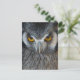 Carte postale avec macro / photo de gros plan d'un visage de hibou noir et blanc.