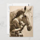 La photo vintage d'une femme et de son cheval dans la sépia modifie la tonalité.