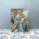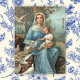 La carte postale Madonna bleue française présente une image d'une belle carte sainte française antique imprimée à la fin du XIXe siècle. Jésus et la Bienheureuse Mère sont entourés de colombes blanches et d'un paysage boisé brumeux. L'image bleu et aqua est imprimée sur l'avant et une carte postale traditionnelle est installée sur l'arrière.