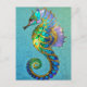 De magnifiques tons de bijoux : turquoise, aqua, vert, or lavande, cheval de mer doré. numériquement dessin à la main. Quelle carte de voeux amusante et encadrable pour les amoureux de l'océan et ceux qui aiment les créatures marines mystérieuses, les créatures marines