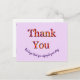 Les locations de maisons et de chambres sont devenues de plus en plus populaires au cours des dernières années. Faites ressortir votre location avec cette carte postale lumineuse et gaie qui laisse une impression finale et de suivi lumineuse et gaie à vos invités. Les mots merci apparaissent dans un motif tie-dye sur cette carte postale bon marché. Le texte "Nous espérons que vous avez apprécié votre séjour" peut être personnalisé et forme un "sourire" au bas de la carte postale. Le texte au dos peut également être personnalisé et permet un espace suffisant pour lister vos noms ou l'adresse de votre maison. La couleur de fond unie peut également être personnalisée si vous le souhaitez.