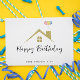 Carte Postale Maison dorée avec ballons Joyeux Anniversaire Immo