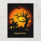 Joyeux Halloween. Maison hantée et Silhouette d'arbre. Chauves-souris, lune et Jack-o-lanterne.
