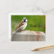 Carte postale Merci moineau de la maison. Bruant de maison sur le pont dans le jardin au printemps. Customisez-le en ajoutant ou en modifiant le texte ! Assurez-vous de consulter tous mes autres designs uniques à www.zazzle.com/lsarmentoart .
