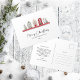 Carte de vœux de Noël avec des maisons mignonnes dans les couleurs traditionnelles de Noël. La carte de vœux des fêtes dans un style moderne avec des maisons mignonnes en rouge et vert. Au verso, il y a une félicitation pour les proches et les amis. Sans photo.