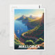 Explorez la beauté méditerranéenne de Majorque avec cette carte postale qui présente des routes sinueuses à flanc de falaise, des voiliers et des montagnes ensoleillées. Un lieu de séjour idéal pour les voyageurs, les amoureux de la nature et les amateurs de paysages d'Europe vintage.
