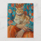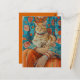 Femme, mère de chat, habillée en tenue de style boho orange turquoise tenant un chat sur ses genoux - Fête des mères de chat