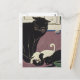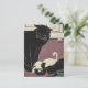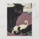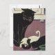 Art Deco vintage illustration of a mother cat and her two kittens. The two are jumping on Tail.