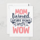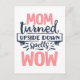 Montrez votre amour et votre appréciation à votre mère le jour de la mère avec cette carte postale amusante avec la citation "MOM tourné vers le bas sorts WOW" dans la typographie rose et gris