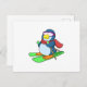 Carte Postale Manchot en skieur avec écharpe de ski et lunettes