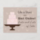 "La vie est courte donc mangez gâteau, beaucoup et beaucoup de gâteau" - Gâteau à carreaux mignon sur le stand de gâteau. motif Brown et rose sur carte postale.