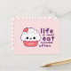 Cute cupcake au visage heureux et la citation "La vie est courte, mangez souvent des cupcakes."